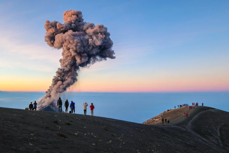 The Acatenango volcano hike is a bucket list trek in Antigua, Guatemala where you can camp on top...